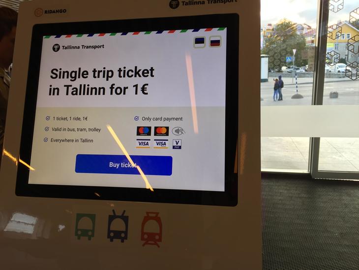 が!「まだなーんにも決まってないから、とりあえず今日は市内のホテルに向かい、徒歩圏内の世界遺産(タリン旧市街)をぶらつく」という方は、バスやトラムに乗車する前、↓の機械でチケットを買うと、1回の乗車が1ユーロで済みます(トラムやバスの中でチケットを買うと2ユーロなので、なんと半額)。