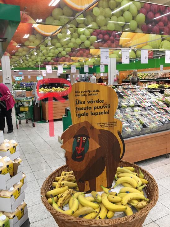 バナナのところにはエストニア語で、「子ども1人バナナ1つ無料」といったことが書いてあります。