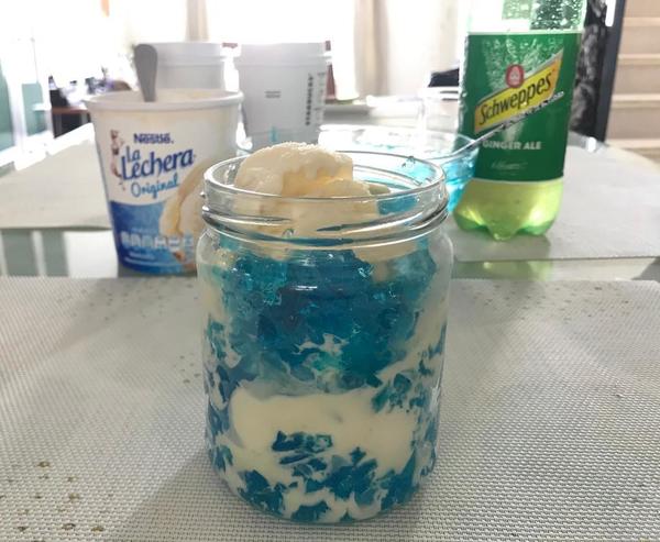 日本ではバニラアイスやヨーグルトを使用しているようですが、メキシコのバニラアイスは黄色みが強いのと、ヨーグルトも適度な硬さがないため、雲を表現するには向いていないのでどちらも却下。