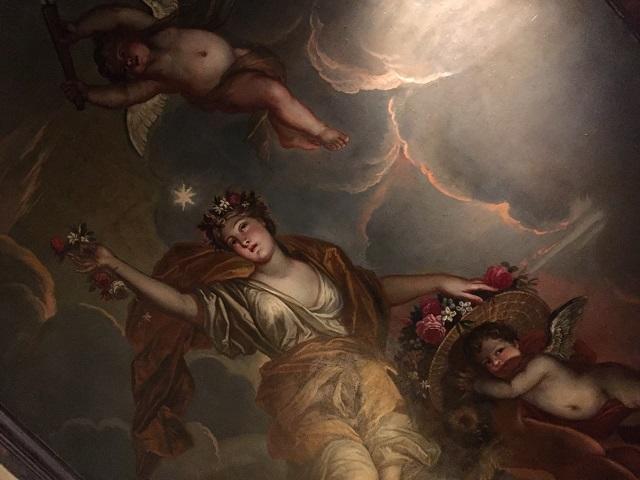 絵画のコレクションは特に素晴らしく、額装して壁に掛かっているものだけでなく美しい天井画も必見。とくに天井画は階段やホールの上にあるものが秀逸です。