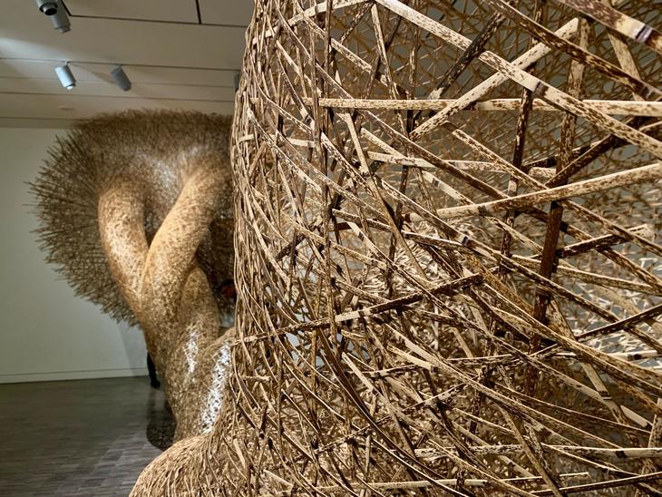帰り間際にお部屋いっぱいに竹細工、バンブーアート “タイガーバンブー(虎竹)”日本(高知県)だけの種類で虎班竹(茶色い竹に虎の縞模様みたいな斑点がある)で作った作品。田辺竹雲斎先生作