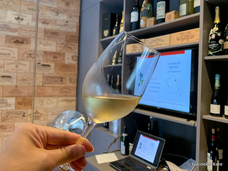 色、香り、味など、テイスティングの基本的を学びつつ、表現の仕方、ブドウや土壌の種類などを学んでいきます。「シャンパンはどうして他のワインと比べて重宝されるのか?」「シャンパンとプロセッコの違いは?」など、ワインの知識というと、覚えなければいけないことが山のようにあるイメージですが、先生が論理立って説明してくれるため、すっと頭に入ってきます。