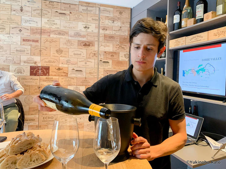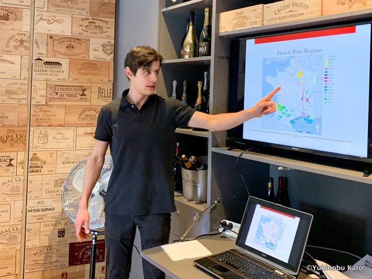 講座は1時間半。シャンパーニュ、ロワール、ブルゴーニュ、ボルドー、アルザス、ローヌなどフランス各地のワイン産地やブドウの品種について学びます。テイスティングできるワインは6種類。デュクロ・ラ・カーヴのソムリエが厳選した銘柄が出されます。