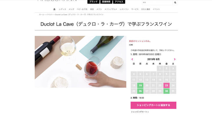 ワインテイスティング教室の申し込みはギャラリー・ラファイエットの公式サイトから。「地球の歩き方 パリ特派員ブログ」の読者向けに、ギャラリー・ラファイエットから割引コードをいただいたので、申し込み時はこちらも併せてご利用ください。
