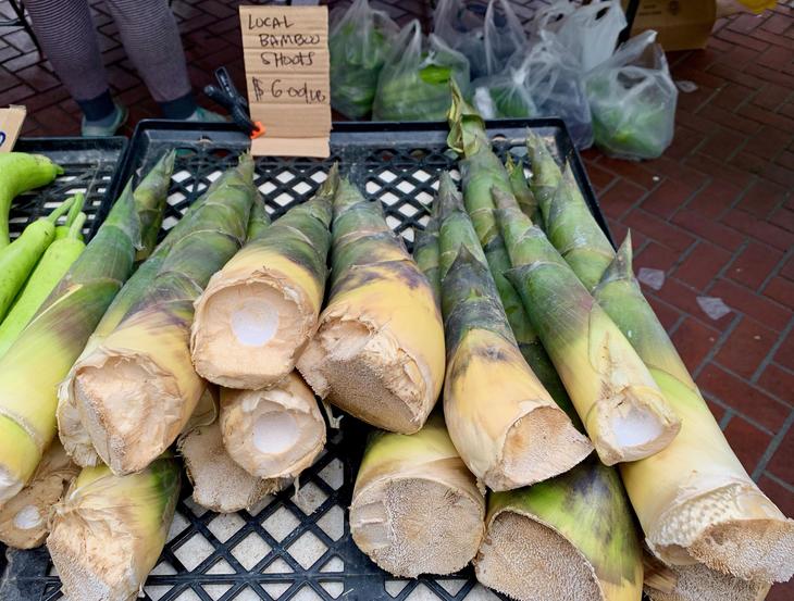 アジア系が多いベイエリア・サンフランシスコでは、こうしたアジアの人たちくらいしか食べないだろという食材もファーマーズマーケットで見かける。 以前紹介したウメ、赤シソや"ヤマゴボウ""モロヘイヤ" も名前は違っても売られているんでとっても嬉しい。