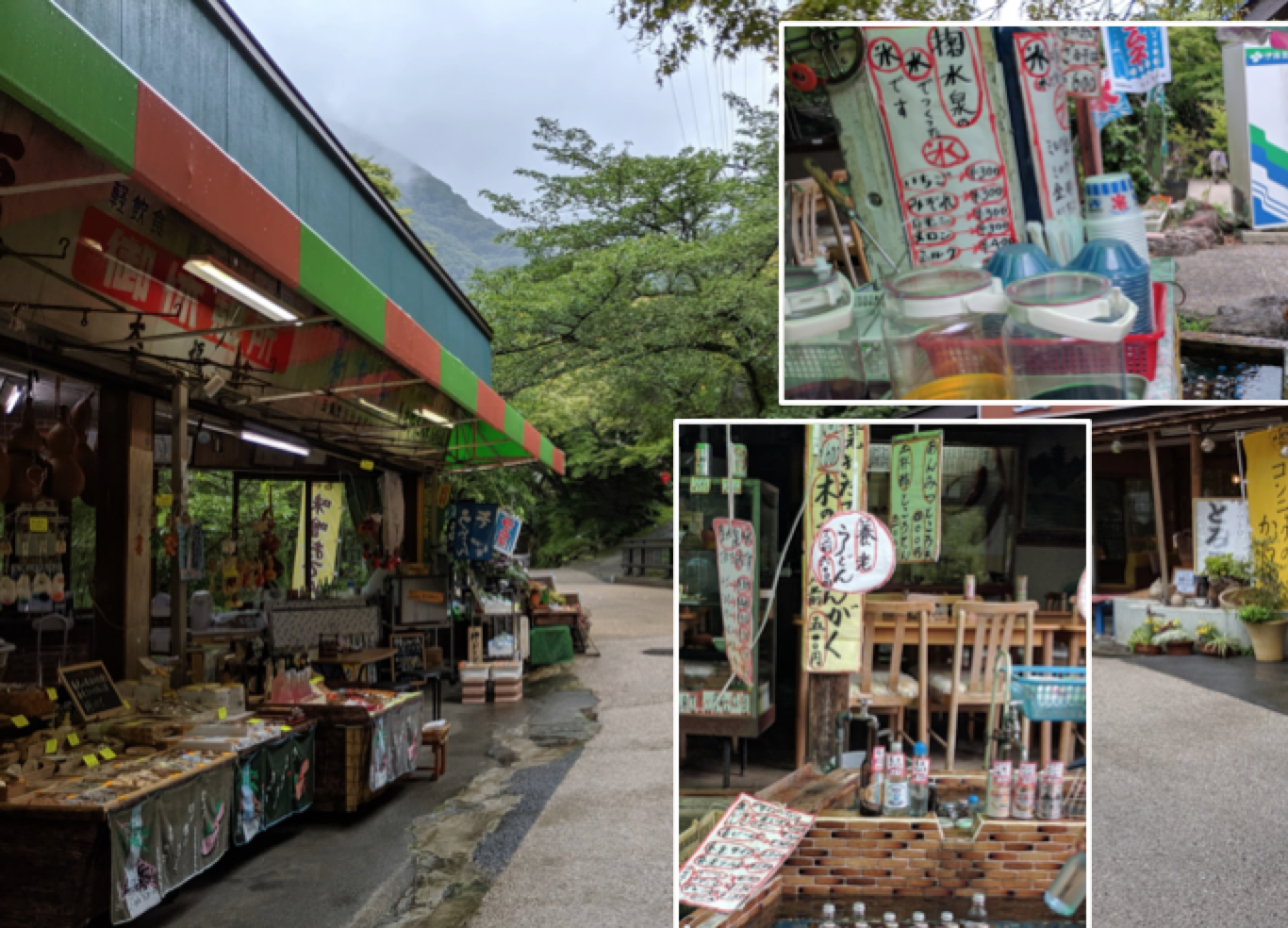 養老の滝までの散策路は長い坂道です。散策の道筋のお土産物屋さんの養老サイダーや菊水泉のお水で作ったかき氷、田楽や飛騨牛コロッケなどを楽しみながら養老の滝までの道中を進まれるのがおすすめです。