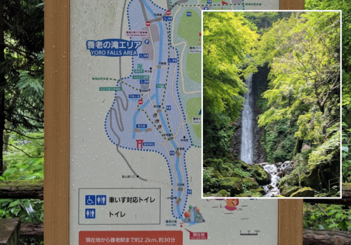 散策路マップ(部分)と養老の滝