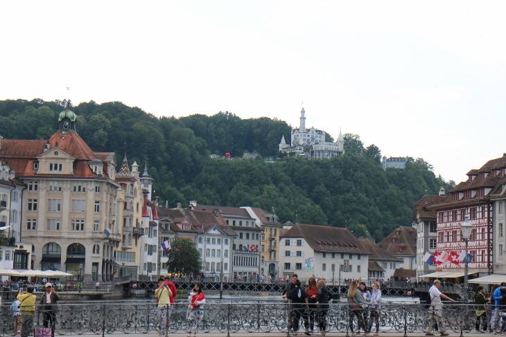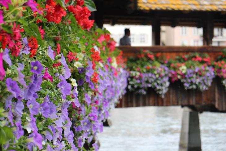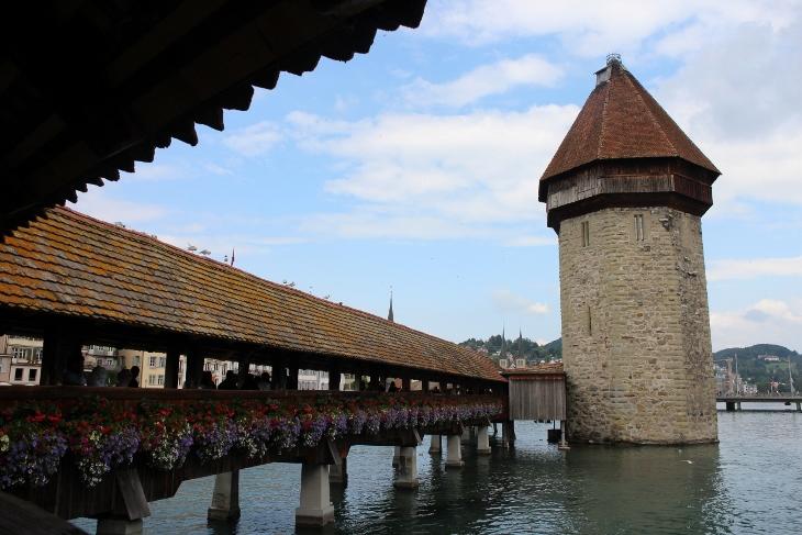 ヨーロッパ最古の屋根付き木橋のカペル橋は、たくさんの人で賑わっていました。