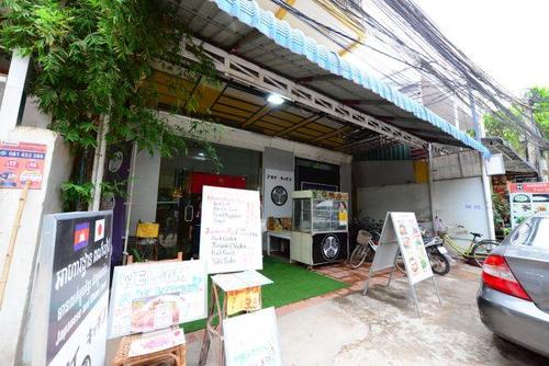 まずは入り口看板とメニュー。クメール料理と日本食があり、それぞれバックパッカーのお財布にも優しい値段設定のようです。