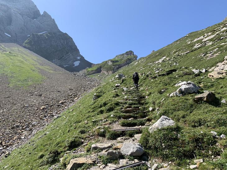 メグリスアルプからロートシュタインパスまで、標識によると約2時間。