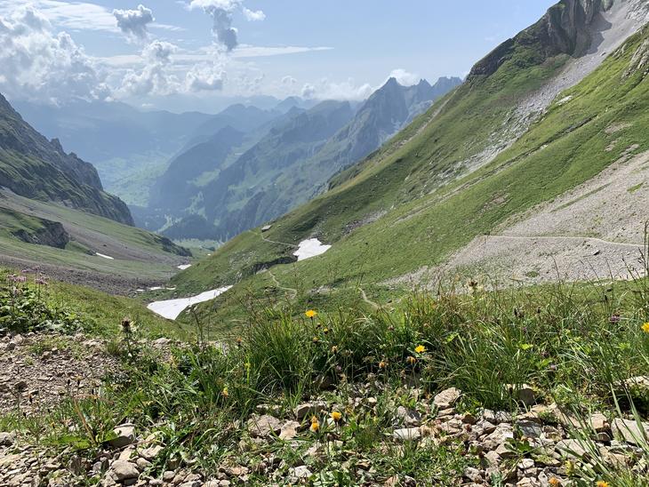 ウンターヴァッサーまであと1時間半という地点から、私たちが歩いてきたところを見上げると、こんな感じでした。