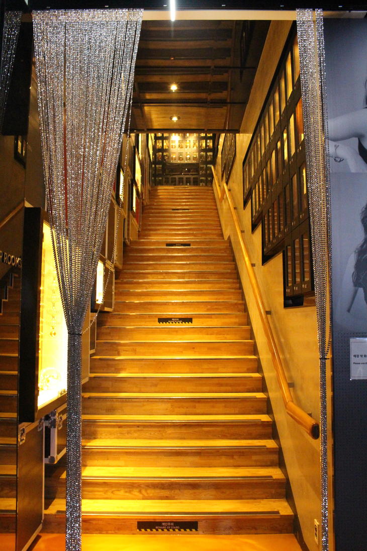 入口左側には、6Fに続くきらびやかな階段があり、