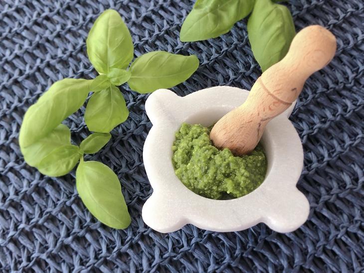 というわけで、そうそうに、バジルソース。= ペスト(ジェノヴェーゼ)を作ってみた。いつもより美味しく感じたのは言うまでもない。