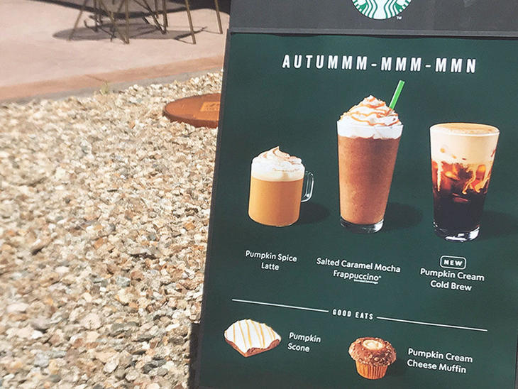 アメリカの夏はメモリアルデー(5月の最終月曜日)からレイバーデー(9月の第一月曜日)でまでの約3か月ということになっています。なのでまだ夏が終わらないうちに秋のドリンクの登場です。