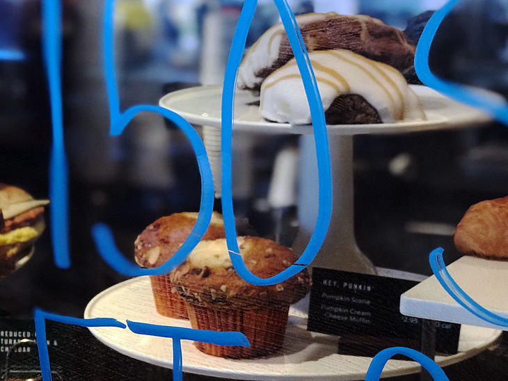 この秋の季節限定ニューは、すっかり定番となっているパンプキン スパイス ラテ(PSL)のほか、新登場のパンプキン クリーム コールドブリューの2種類のドリンクとパンプキン スコーンとパンプキン クリームチーズ マフィン。