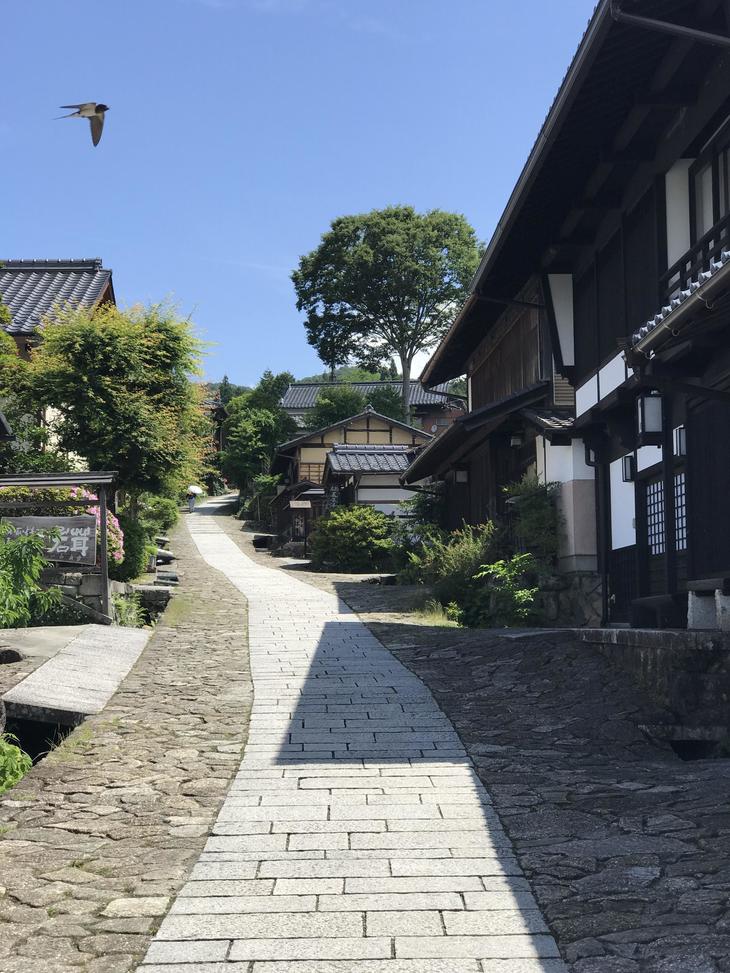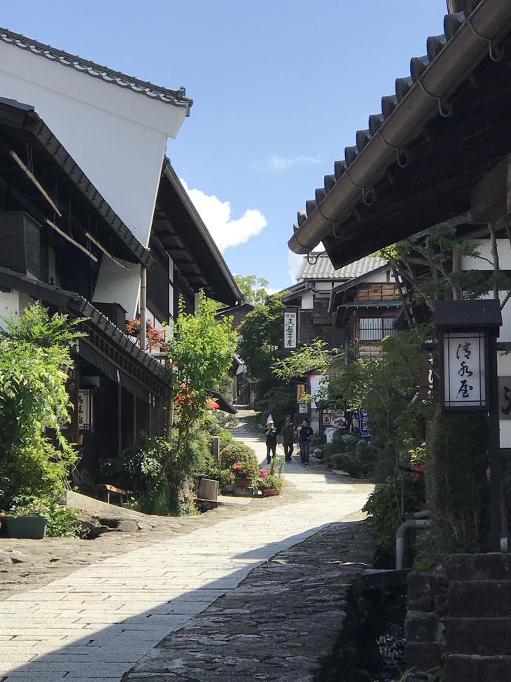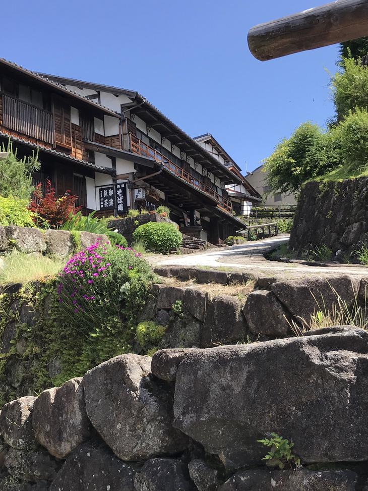 かつては長野県木曽郡山口村に属したが、2005年(平成17年)2月の山口村の越県合併により岐阜県中津川市に編入された。1895年(明治28年)と1915年(大正4年)の火災により、古い町並みは石畳と枡形以外はすべて消失したが、その後復元され現在の姿となった。
