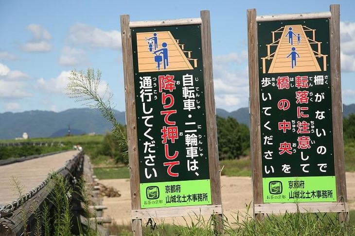 流れ橋は、入り口の注意看板にも書かれてますが、
