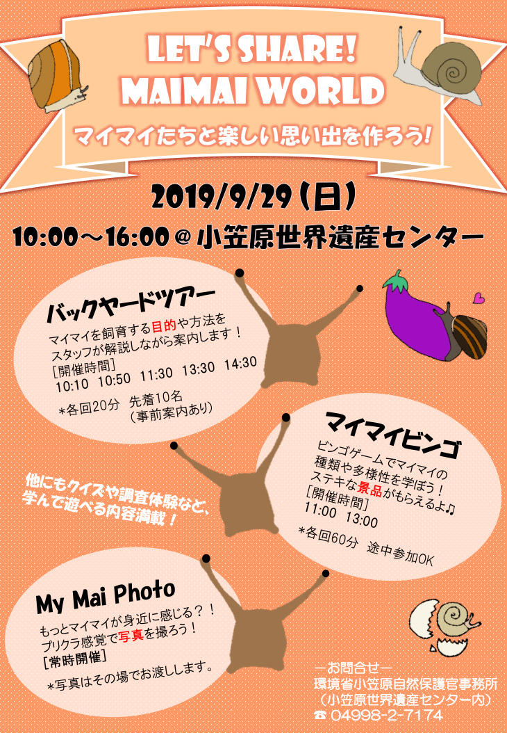 ぜひ小笠原のマイマイワールドをお楽しみください!