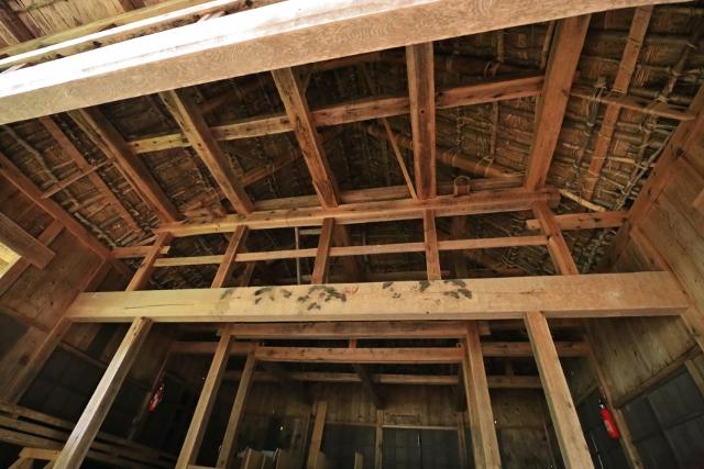 国内でも珍しい兜造の茅葺屋根を有する農村舞台で、国の重要有形民俗文化財にも指定されています。