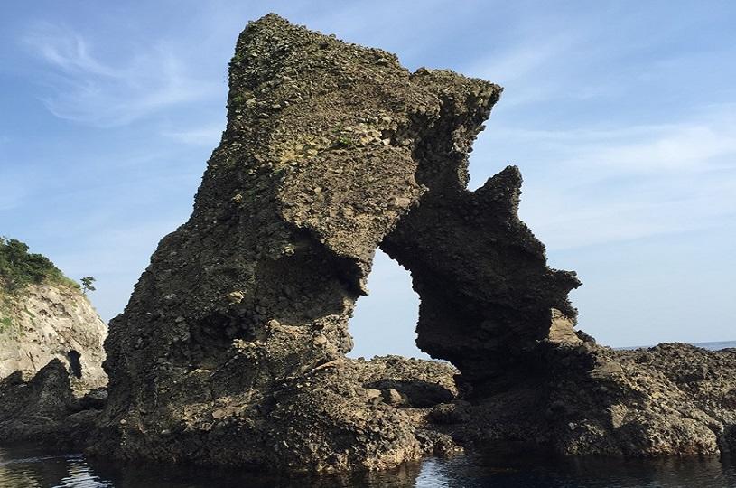 夕陽の名所西伊豆町は黄金崎にそびえる「馬ロック」です。