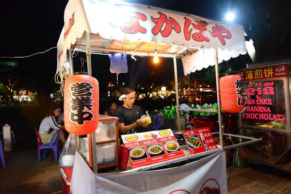 というのも、先日ふとリバーサイドの屋台街を歩いていると、あれれなんか日本ぽい屋台があるぞと思い、ちょいと覗いてみるとまごうことなき日本人の若者の姿がそこにあったのです。