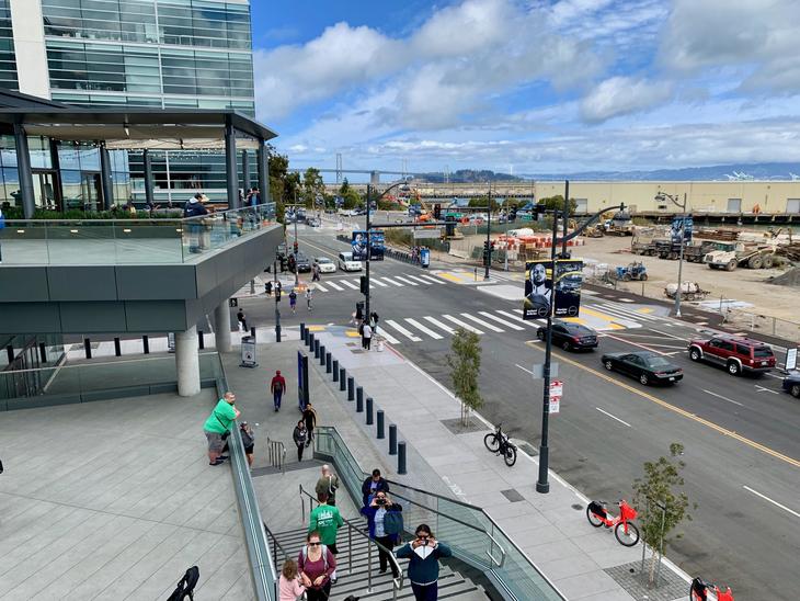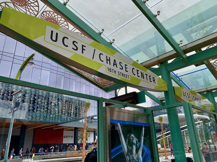パウエル駅からだと、ミュニメトロ T-Line Third Streetが便利。 モンゴメリー駅・エンバカデロ駅そしてオラクルアリーナを通過して『UCSF/CHASE CENTER』で下車。