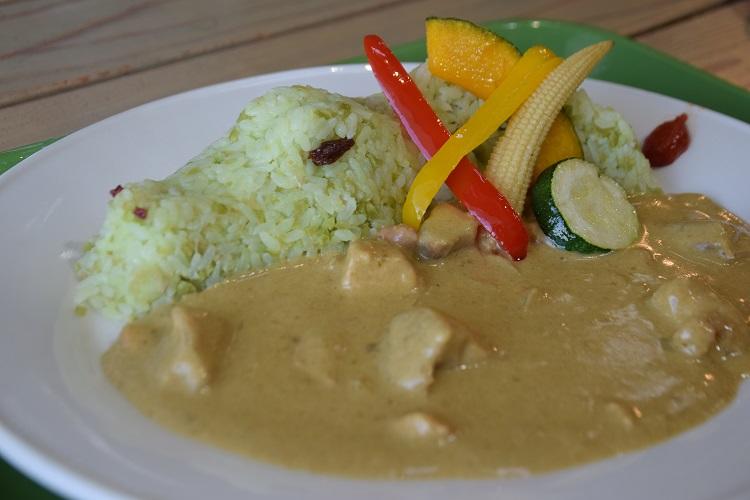 ホウレン草のチキンカレーですが、辛くないのでお子様でも大丈夫です。