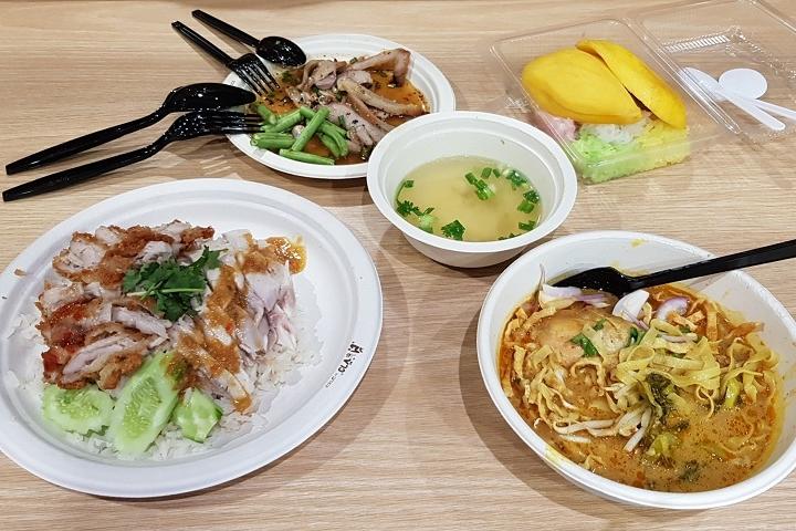 公式サイトでも説明が掲載されておらず、しかも、一見何もなさそうに思えるのですが、UG階の奥には、1皿40バーツ前後位から80バーツ位の料金で、タイ料理(写真上)をその付近でいただくことができます。これほどの高級感あふれるショッピングモール内で、この価格で食事できるなんて信じられないことです。しかも、お味は、衝撃の美味しさでした。