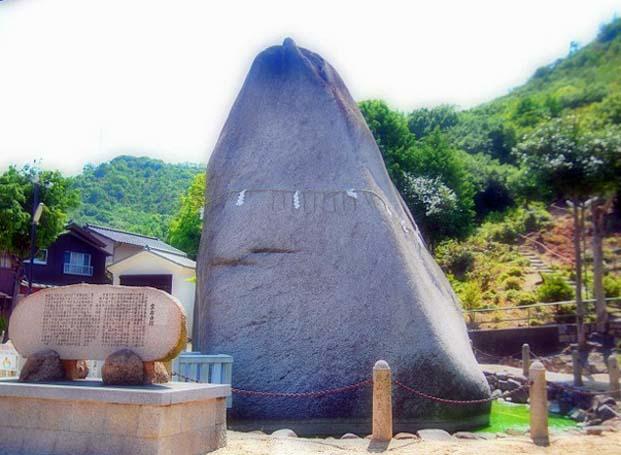 ある夜、この岩から3つの火の玉が飛び出し、玉比咩神社の背後の山、臥龍稲荷神社奥宮へひとつ