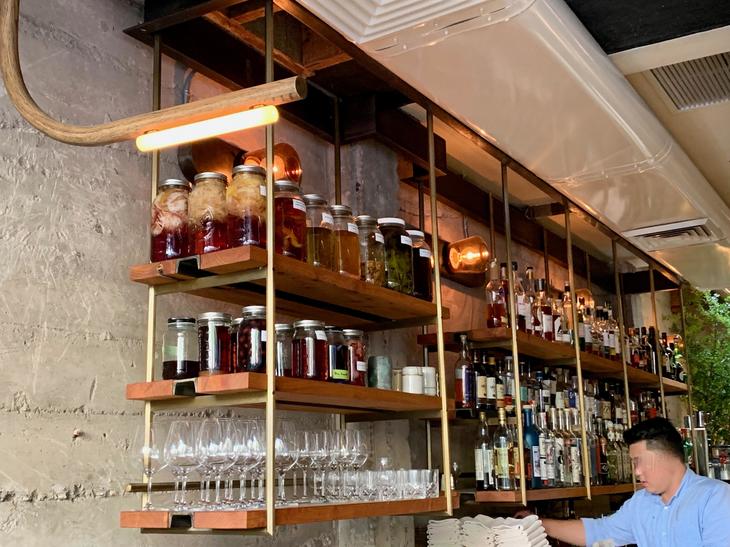 夕方5時半から予約はいっぱいになるそうだけど、手前のバーカウンターとラウンジは、"ウォークイン(Walk-In予約なしの飛び込み)"用に2〜3席確保されてるようだ。 バーは特に予約なくても大丈夫。