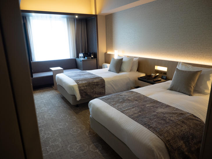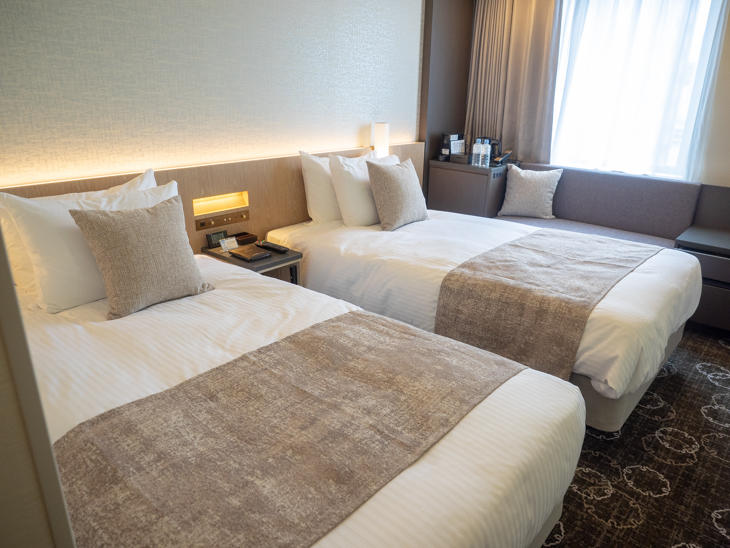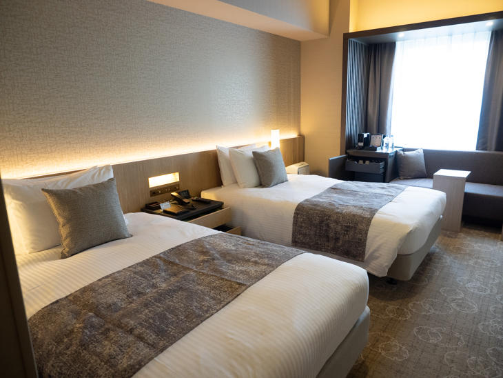 ユニットバス仕様になっている分、2ベッドをセパレートに配置し、2名でゆったりとベッドを使用したい場合に適した客室です。