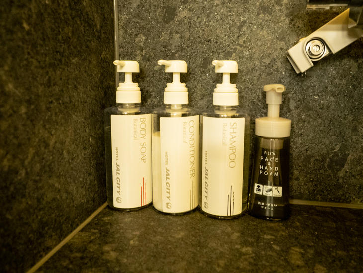 大浴場備え付けのバスアメニティもホテルJALシティオリジナルです。