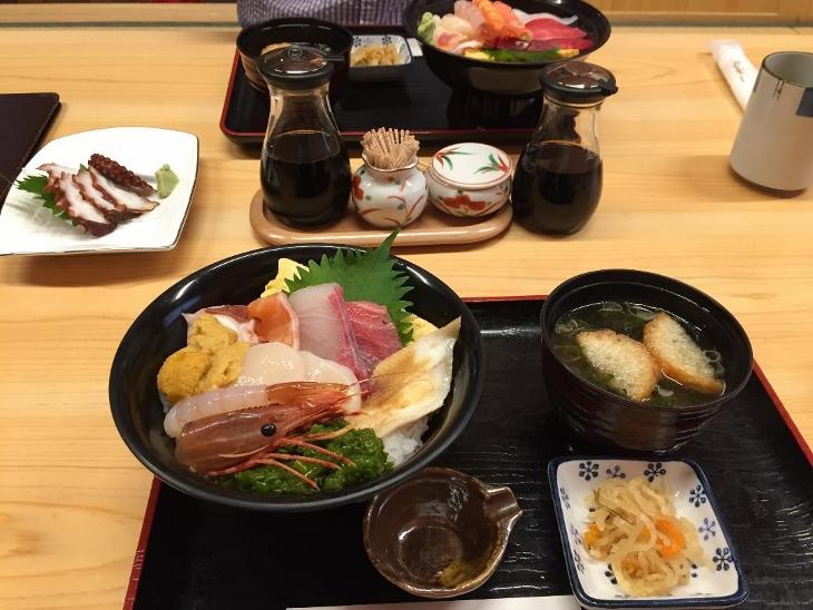 たくさんの人で賑わっていて飲食店は行列ができていましたが、弁慶鮨で海鮮丼をいただきました。