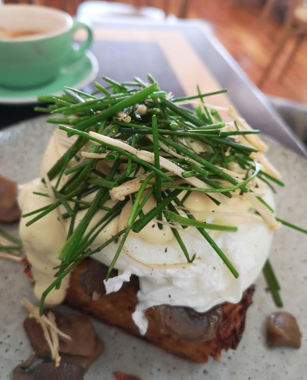 ↓こちらは目玉焼きが乗ったオープンサンド、マッシュルームなどが味のアクセントになってます↓