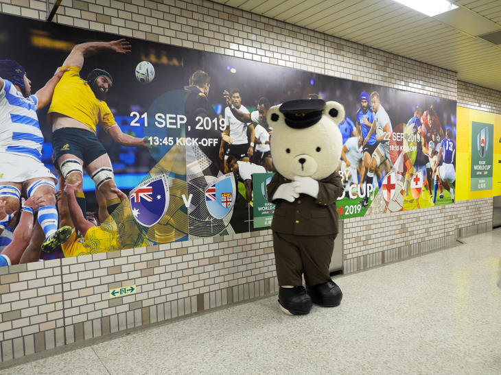 試合当日の最寄りの地下鉄東豊線「福住駅」では、札幌市営地下鉄のゆるキャラ、