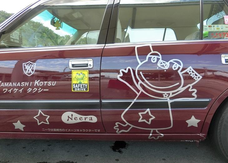 ニーラタクシーは、韮崎市の市制施行65周年と、ニーラ生誕10周年を記念して、韮崎市・北杜市を起終点とする峡北交通圏エリアで運行を始めた、韮崎市とYKタクシー(山梨交通)が共同制作したタクシーです。
