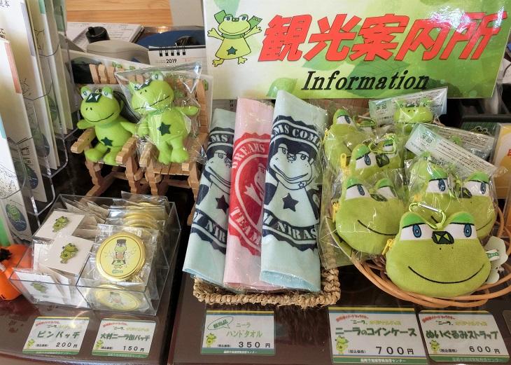 さて。ニーラってどんなキャラクターなんでしょう。ニーラグッズを販売しているJR韮崎駅前にある「韮崎市民交流センターNICORIニコリ」の観光案内所へ行ってきました。