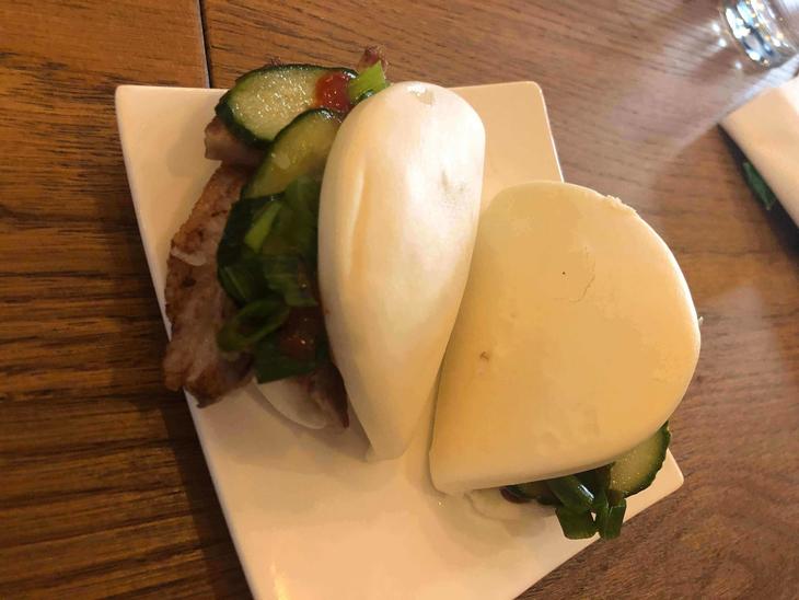 ポークバンはこちらの甘い中華まんの生地のようなパンに豚肉を挟んだ食べものです。