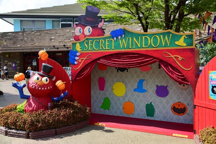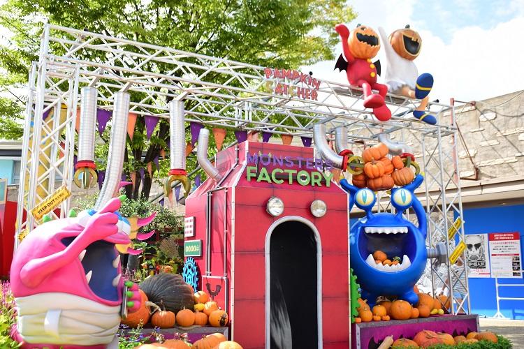 正面インフォメーション前からは見事なハロウィンデコレーションが続きます。モンスターの秘密の部屋を覗く、パンプキンキャッチャー。
