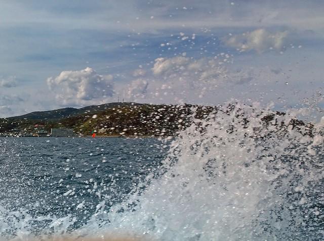 外洋に出たとたん、青い海と空の間を波から波へとジャンプするようにボートは進んでいきます。