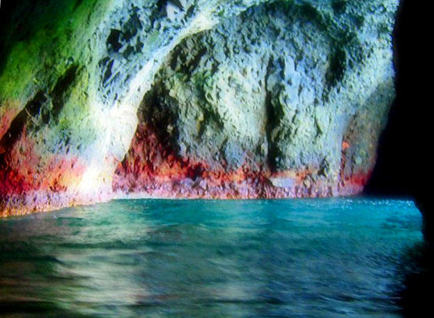 海面だけでなく、洞窟内も地質の影響でカラフルです。