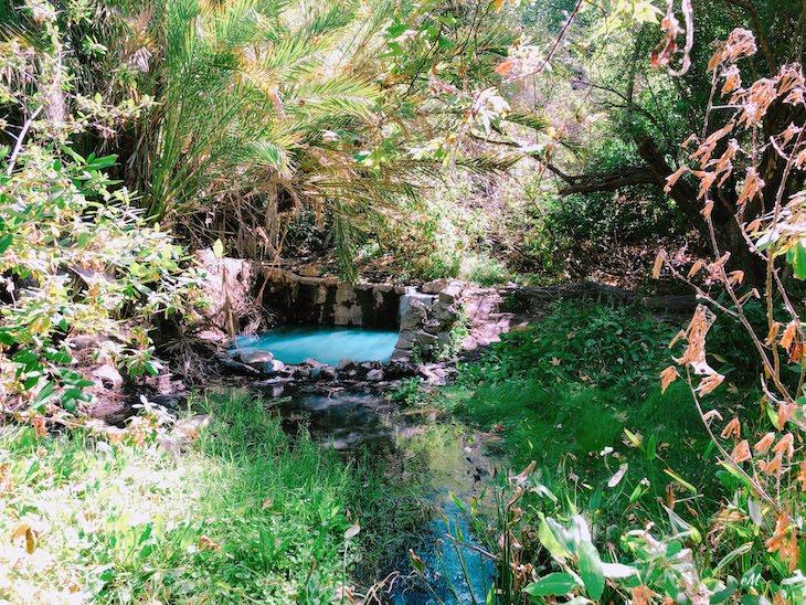 ちょうど木陰になった温泉は、足湯にも最適。カリフォルニアの山中にある大自然の温泉を楽しみましょう!