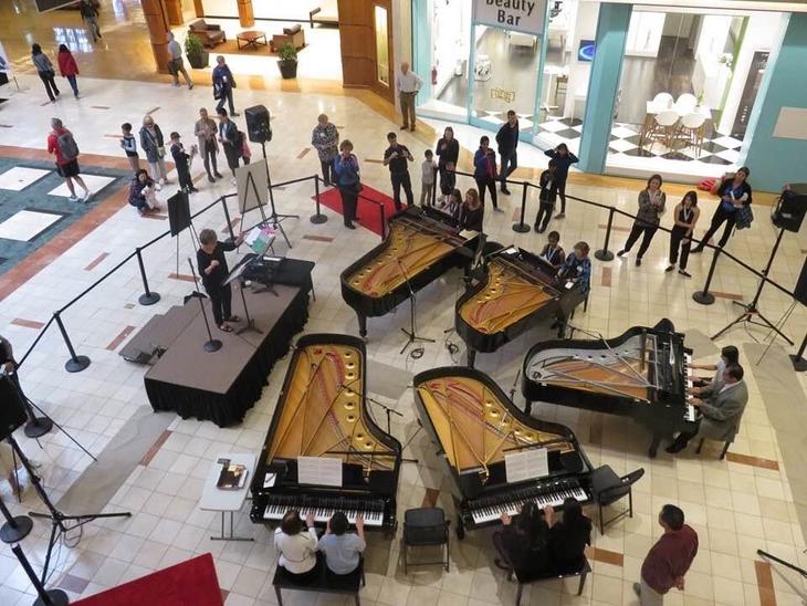 シカゴからハイウェイで40分程北上した所にあるNorthbrook Courtは無料の子供のプレイエリアから授乳ラウンジ、ベビーカーレンタルなどが完備されている子連れにも優しいモールなんです。その他には電気自動車の充電や、万が一バッテリーが上がった時用のジャンプスタートなどのサービスもあるので寒いシカゴであるあるの車の問題にも対処してくれ大助かり~モール内にある広いスペースで年に一度開催されるのが、5台ものピアノによる連弾のコンサート。日本人の先生が主催するピアノ教室からも大勢の生徒さん達がエントリーして演奏を盛り上げているのは必見。ピアノ教室についての情報はこちら♪