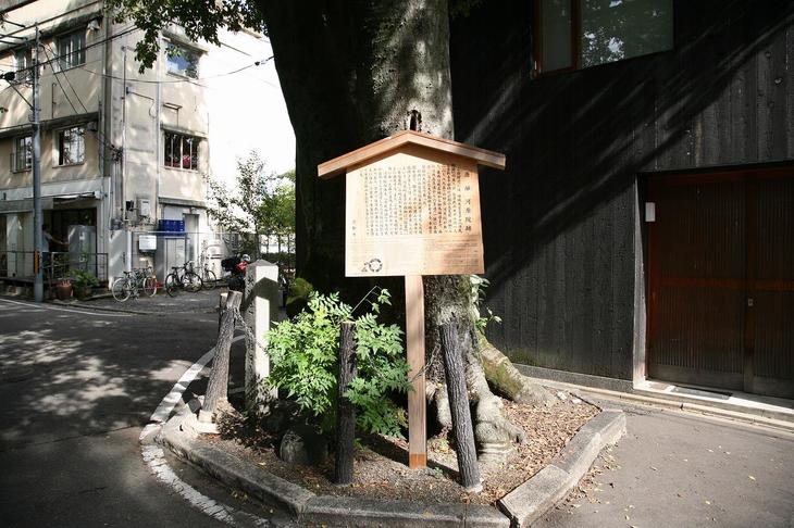 源融の木のあるこの場所は、かつて源氏物語の光源氏のモデルとされる嵯峨天皇の皇子 源融(みなもとのとおる)の邸宅「河原院」の跡があり、この榎の大樹は、この邸内にあった籬(まがき)の森の名残とされています。