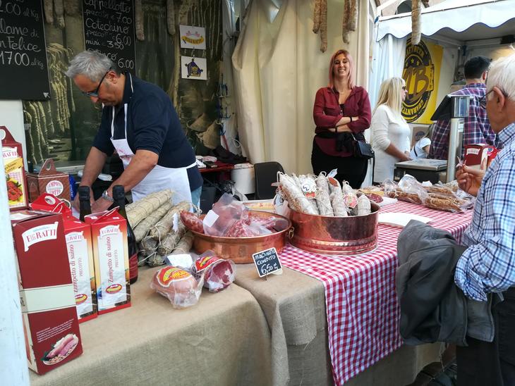 イタリアではこのようにフリーマーケット、各地で行われます秋の郷土料理青空マーケットが行われます。
