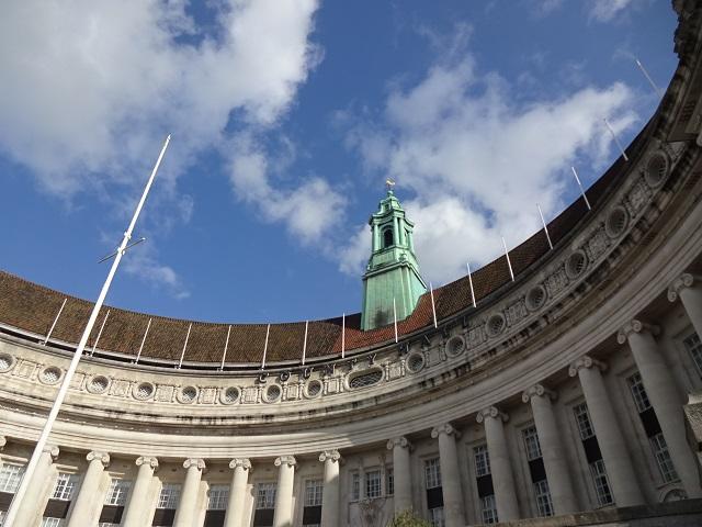 カウンティホールというと、このテムズ川に面した姿ならばご存知の方も多いと思います。大観覧車・ロンドンアイと並んで、白亜の建物が目を引きますよね。その名の通り昔は、ロンドン市行政の実務を執り行う役所のオフィスだったところ。