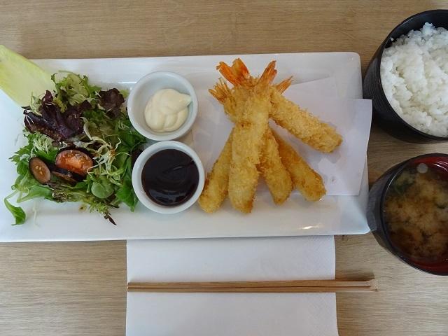 この時いただいたのは海老フライ定食ですが、焼き魚やカツカレー、鳥のから揚げなどカジュアル和食の人気メニューがいろいろ。給仕の方もシェフ長も日本人だけあり、お味はバッチグーでした! ランチメニューは10ポンド前後なので、場所柄を考慮したらとてもリーズナブル。