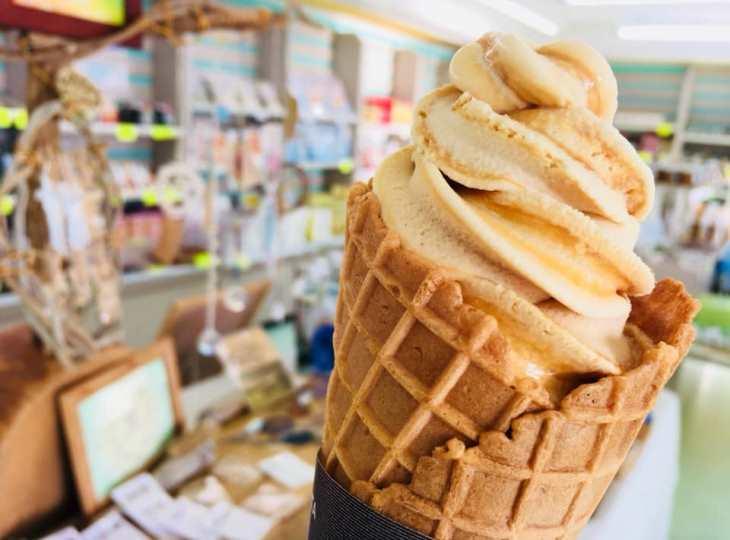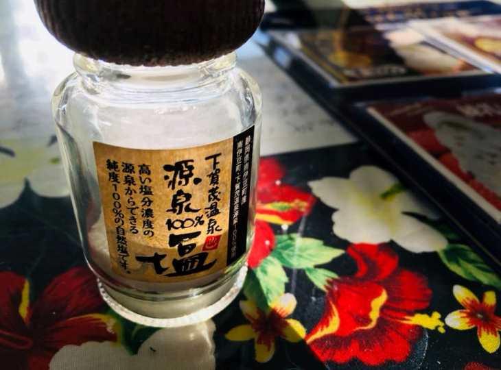 キャラメルソフト(380円税込み)。 南伊豆 下賀茂温泉塩をかけると味が引き締まり、ご当地感も倍増。