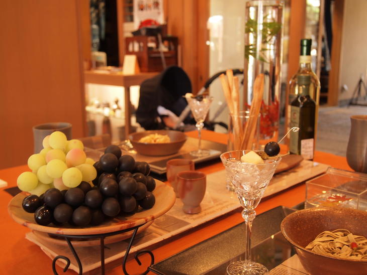 店内のギャラリーには、備前焼を使ったテーブルがディスプレーされていました。