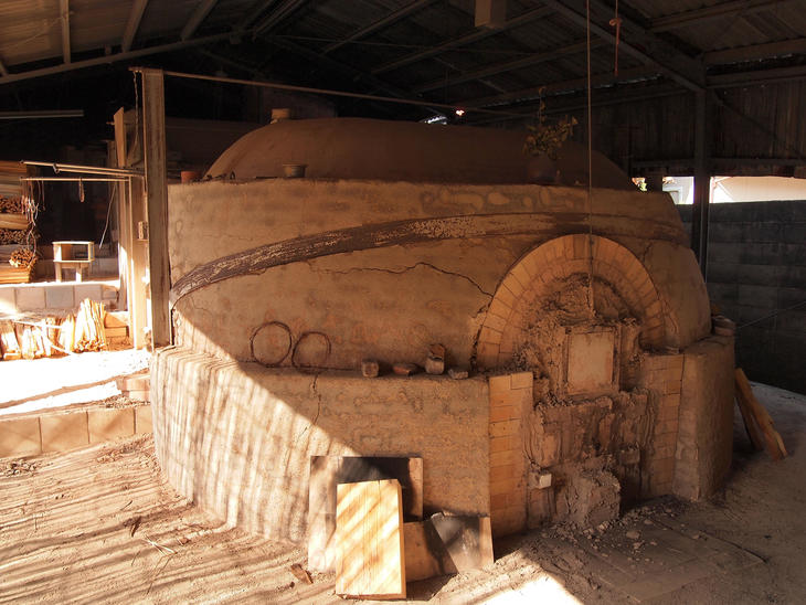 伊部を訪れたのは、祭りの日ではなく、平日の昼下がりでした。ちょうど、登り窯で窯焚きをしている窯元があったので見せていただきました。